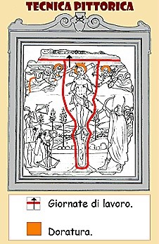 Il dipinto è racchiuso da una cornice in pietra serena non pertinente all’assetto originario dell’opera, ma aggiunta nel XVII secolo.
