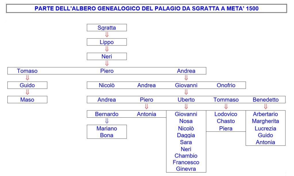 Attraverso la documentazione consultata è possibile una parziale ricostruzione dell’albero genealogico dei Del Palagio: